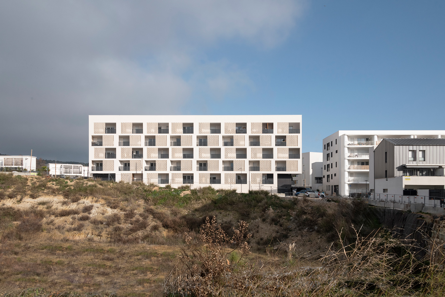 Le projet puise dans la mémoire marseillaise et méditerranéenne, non pour la reproduire, mais pour la réinterpréter avec exigence et sensibilité. Ici, dans les quartiers Nord, subsistent les traces du paysage bastidaire, agricole, minéral. Cette présence diffuse nourrit l’écriture architecturale : les façades alternent pleins et vides dans un rythme qui évoque, les murs de pierre des jardins voisins. Les teintes claires, la matérialité minérale, les loggias profondément creusées composent un langage sobre et puissant, où la lumière devient matière et la façade, un filtre habité.